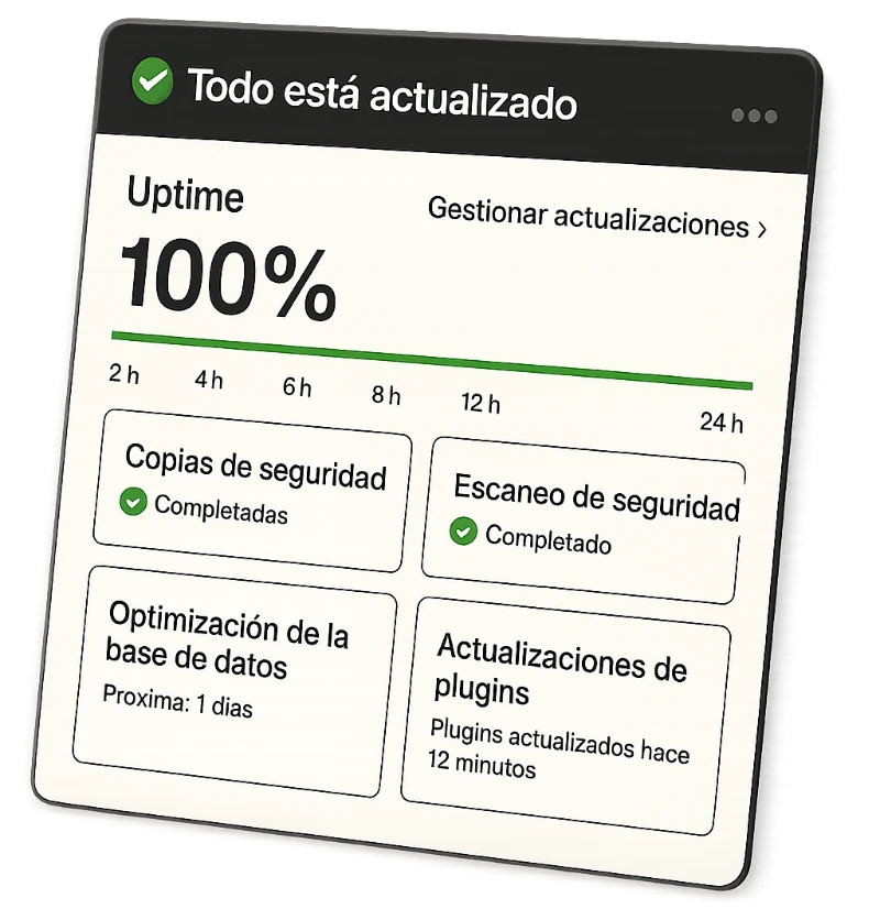 Plugins, tema y núcleo revisados semanalmente con copias diarias.